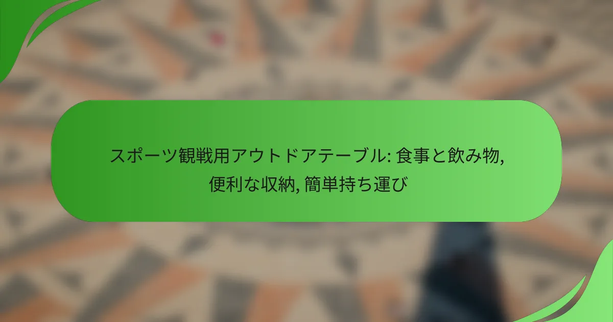 スポーツ観戦用アウトドアテーブルを簡単に持ち運ぶためには、軽量でコンパクトなデザインを選ぶことが重要です。また、便利な付属品や安全性を考慮することで、移動時のストレスを軽減できます。