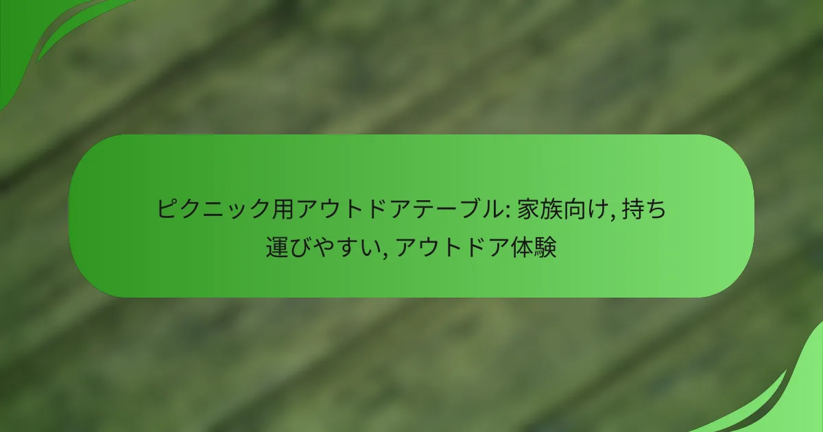 ピクニック用アウトドアテーブルを選ぶ際は、サイズ、重量、耐久性、素材、価格、ブランドの評判を考慮することが重要です。これらの要素をしっかり評価することで、家族向けに最適なテーブルを見つけることができます。