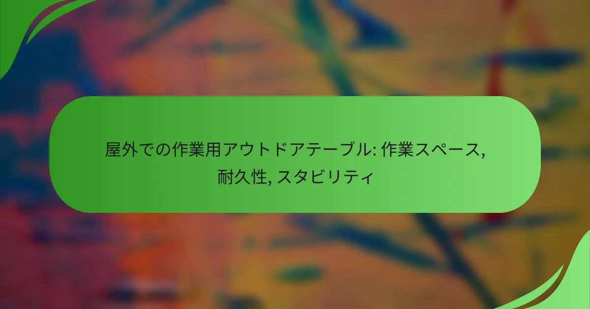 屋外での作業用アウトドアテーブルを選ぶ際は、サイズ、耐久性、安定性を重視することが重要です。これらの要素が作業効率や快適さに大きく影響します。