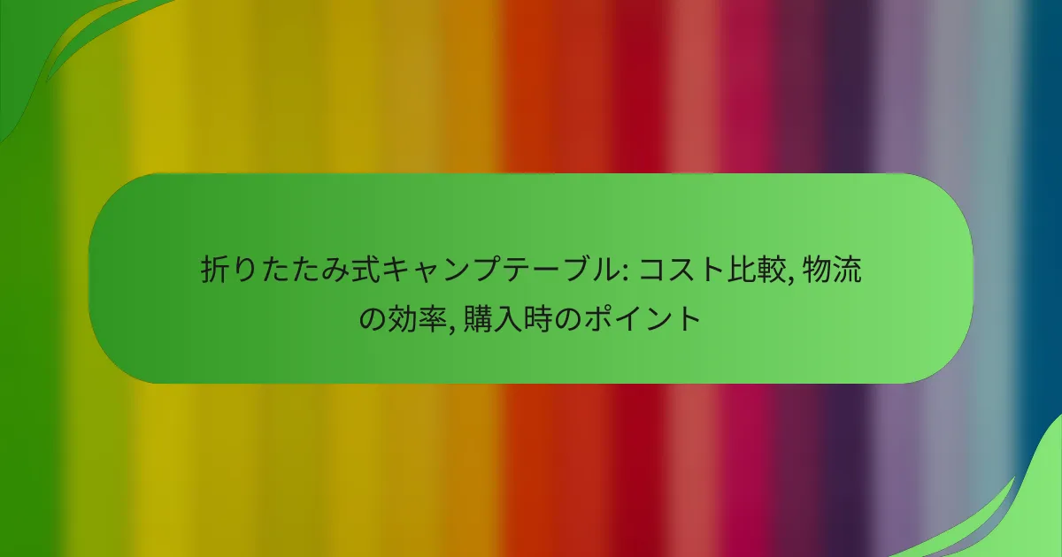 折りたたみ式キャンプテーブルは、コスト比較や物流の効率を考慮することで、より賢い選択が可能です。購入時には、初期投資だけでなく、長期的なコストパフォーマンスやメンテナンスも評価することが重要です。また、使用目的や耐久性、設置の簡便さを考慮することで、自分に最適なテーブルを見つける手助けとなります。